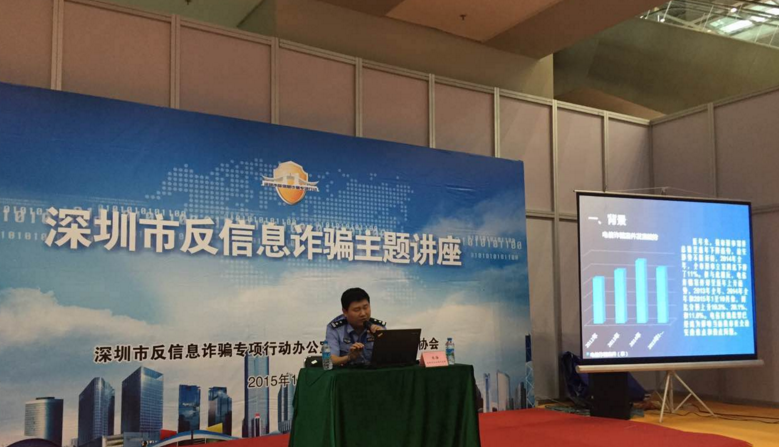 “針對(duì)信息詐騙犯罪高發(fā)的態(tài)勢(shì),今年8月1日,我市開展以深圳市政法委書記李華楠同志為領(lǐng)導(dǎo)小組組長(zhǎng)的反信息詐騙犯罪專項(xiàng)行動(dòng),為期半年。此次專項(xiàng)行動(dòng)主要集中公安、銀行、通信、工商、網(wǎng)絡(luò)企業(yè)等專業(yè)力量共同打擊信息詐騙犯罪。經(jīng)過合成打擊、宣傳防范、警信警銀合作、對(duì)策研究等多個(gè)方面的工作,8月1日至10月25日,全市共立信息詐騙案件環(huán)比下降了13.9%;破信息詐騙案件280宗,環(huán)比260宗上升了7.7%;逮捕涉信息詐騙犯罪嫌疑人190人,環(huán)比149人上升了27.5%;打掉涉信息詐騙犯罪團(tuán)伙19個(gè),環(huán)比19個(gè)持平;凍結(jié)涉案賬戶203個(gè),資金3089.9萬元。”深圳市公安局刑偵局大隊(duì)長(zhǎng)朱海在講座上分享道。