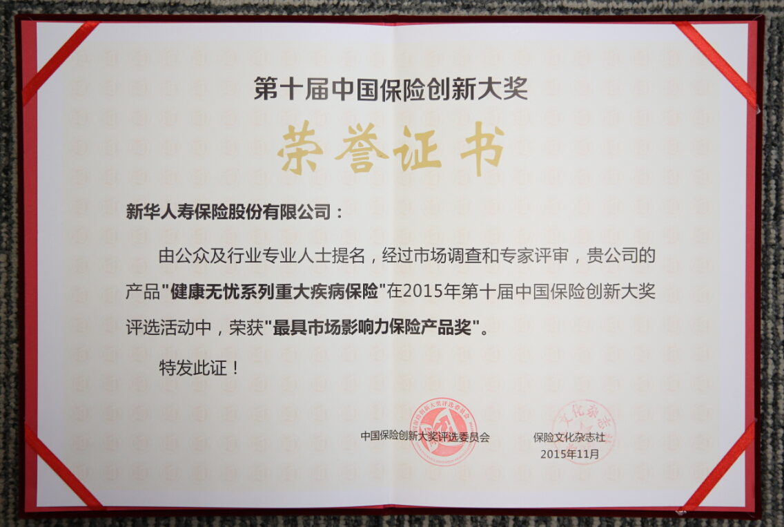 2015最具市場(chǎng)影響力保險(xiǎn)產(chǎn)品獎(jiǎng)