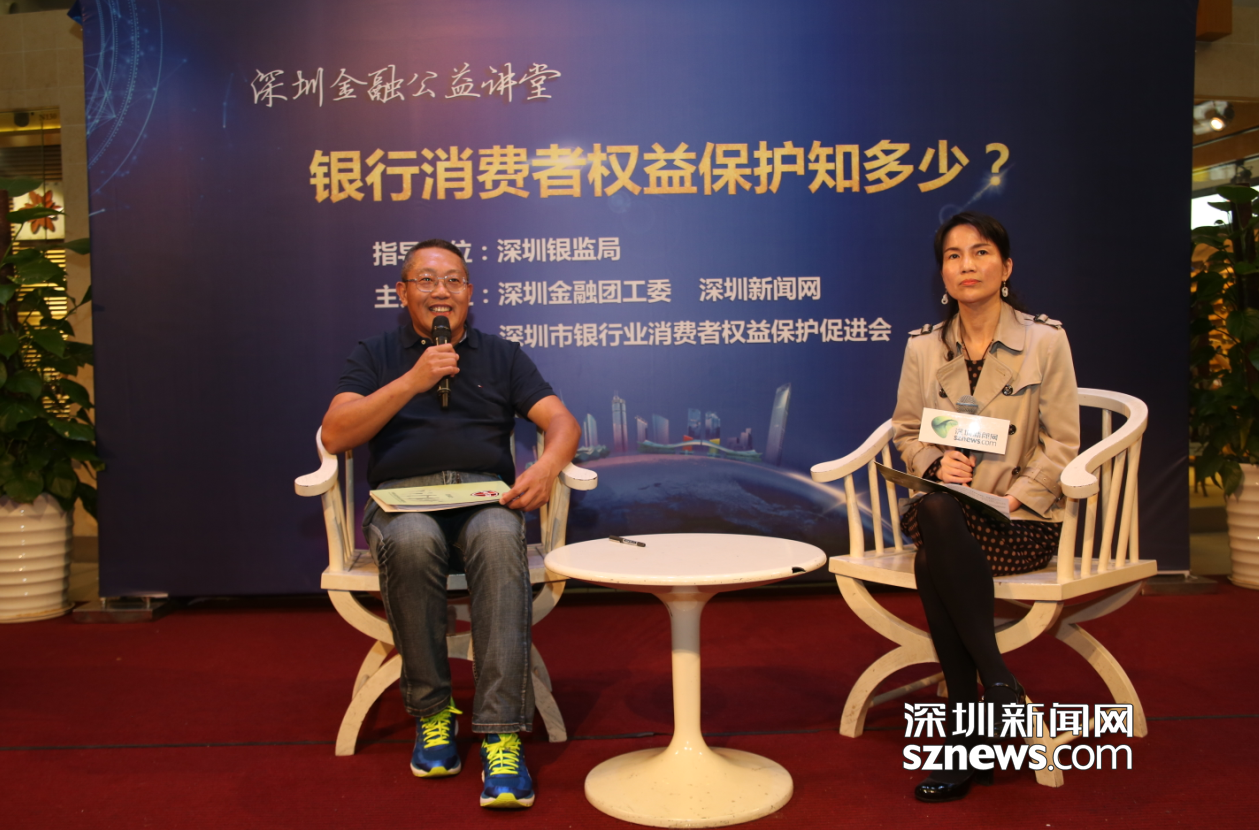 深圳銀監(jiān)局副局長(zhǎng)欒鋒(左)在講解金融知識(shí)