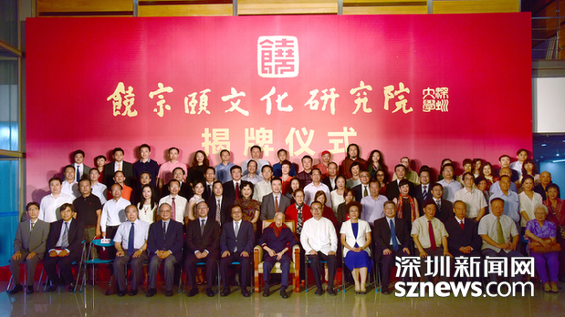 在饒宗頤教授的見(jiàn)證下,李小甘、吳以環(huán)、劉洪一、李清泉共同為深圳大學(xué)饒宗頤文化研究院揭牌。