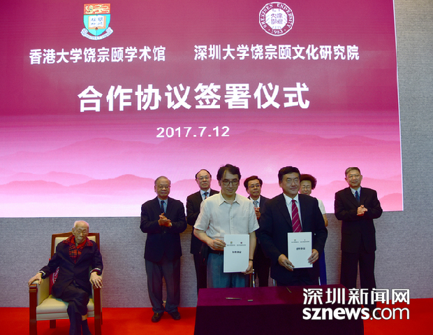 香港大學(xué)饒宗頤學(xué)術(shù)館副館長(zhǎng)鄭煒明、深圳大學(xué)黨委副書(shū)記范志剛共同簽署合作協(xié)議。