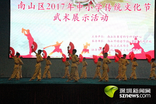 南山區(qū)2017年中小學傳統(tǒng)文化節(jié)武術(shù)展示活動由南山區(qū)教育科學研究中心主辦,南山外國語學校(集團)大沖學校和南山區(qū)武術(shù)協(xié)會承辦。南山區(qū)教育科學研究中心主任余耀賢介紹,為進一步弘揚優(yōu)秀中華傳統(tǒng)文化,落實立德樹人的根本任務,南山區(qū)教育局舉行了首屆傳統(tǒng)文化節(jié)活動,開展了經(jīng)典詩詞特色展演、中小學書法大賽、中國戲曲和民族樂器比賽、中小學生圍棋大賽、傳統(tǒng)文化沙龍和專家報告等形式多樣的活動。