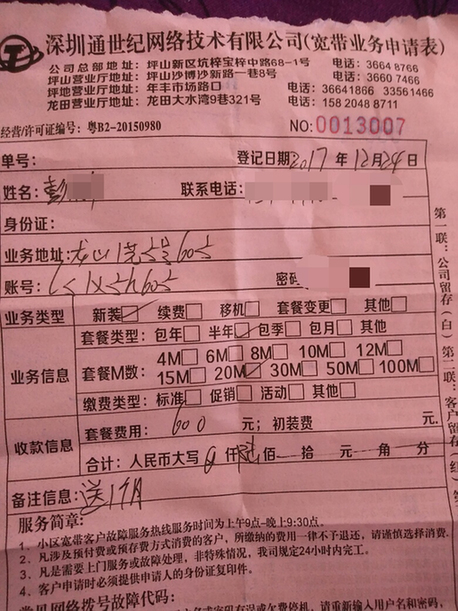 網(wǎng)友提供的寬帶業(yè)務(wù)申請(qǐng)表