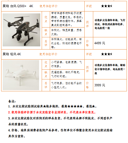 (一)綜合表現(xiàn)最佳。大疆的三款產(chǎn)品綜合評分均高于其他品牌產(chǎn)品,其中“御Mavic Pro”是唯一一個(gè)獲得五星等級評價(jià)產(chǎn)品。