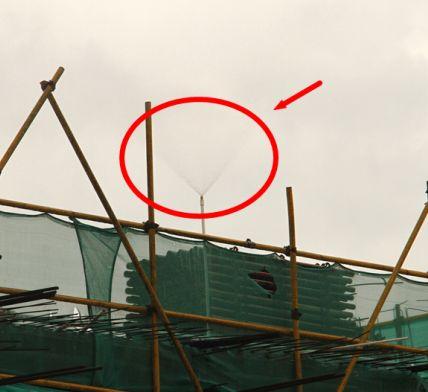 工地樓層外架上設(shè)有固定霧狀噴淋裝置。→