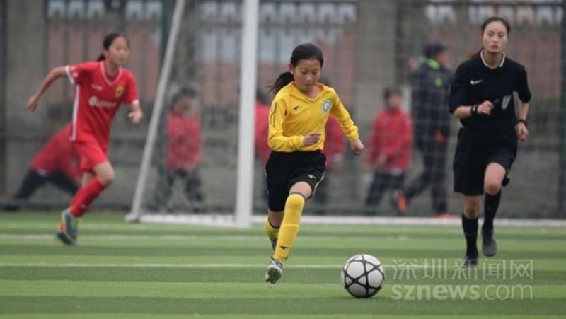 東方小學(xué)學(xué)生左婉欣代表寶安隊(duì)參加全國(guó)青少年足球比賽帶球突破
