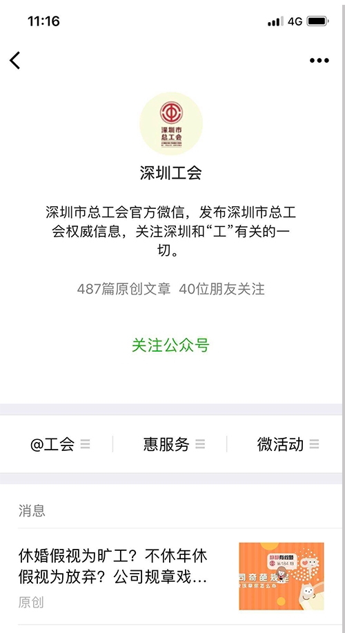 案例介紹:“深圳工會(huì)”是深圳市總工會(huì)官方自媒體,2015年上線,目前用戶數(shù)20萬(wàn)。致力于打造集“工會(huì)發(fā)聲平臺(tái)”“工會(huì)工作者掌上寶典”“指尖上的職工之家”為一體的新媒體平臺(tái)。堅(jiān)持以職工為中心,體現(xiàn)工會(huì)特色,運(yùn)用“互聯(lián)網(wǎng)+工會(huì)”思維,遵循新媒體傳播規(guī)律,突出公益性、服務(wù)性,采取社會(huì)化運(yùn)營(yíng)方式,整合資源,與知名媒體聯(lián)動(dòng),注重實(shí)用性和互動(dòng)性。適應(yīng)職工需求,開(kāi)展豐富的線上線下活動(dòng),活動(dòng)參與人次達(dá)500萬(wàn)。作為深圳工會(huì)新媒體的龍頭,積極提供業(yè)務(wù)指導(dǎo)和技術(shù)支撐,形成覆蓋百萬(wàn)職工的工會(huì)新媒體矩陣。