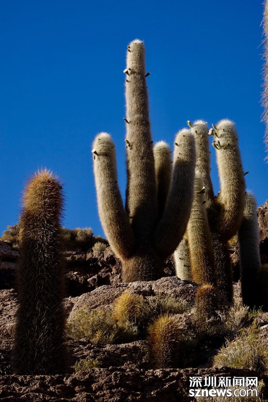 深圳新聞網(wǎng)訊 烏尤尼鹽沼中,有一個(gè)孤立的小山頭,猶如瀚海中的小島。島上長(zhǎng)滿(mǎn)巨大的仙人柱,據(jù)說(shuō)有的已經(jīng)生長(zhǎng)了上千年。這種形狀各異、耐鹽堿、耐干旱的熱帶植物豐富了鹽沼的風(fēng)光,構(gòu)成絕無(wú)僅有的世界奇觀。 李仁奇 攝