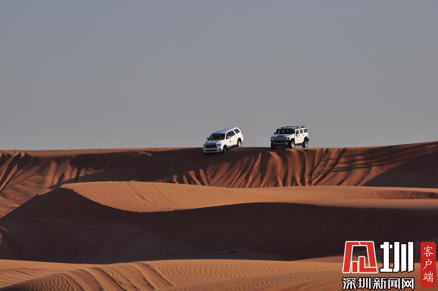 隨著越野車內(nèi)的驚聲尖叫,駕駛員已加大油門沖上前方的沙丘,高度不斷增加,坡度也越來(lái)越大,有時(shí)會(huì)達(dá)到六七十度,就在感覺車幾乎要翻的時(shí)候,突然整個(gè)身體失重,隨著陣陣尖叫,每個(gè)人都緊緊抓死把手,當(dāng)你落到座位上坐穩(wěn)時(shí),才反應(yīng)過(guò)來(lái)越野車已從很高的沙丘上俯沖了下來(lái)!李仁奇攝