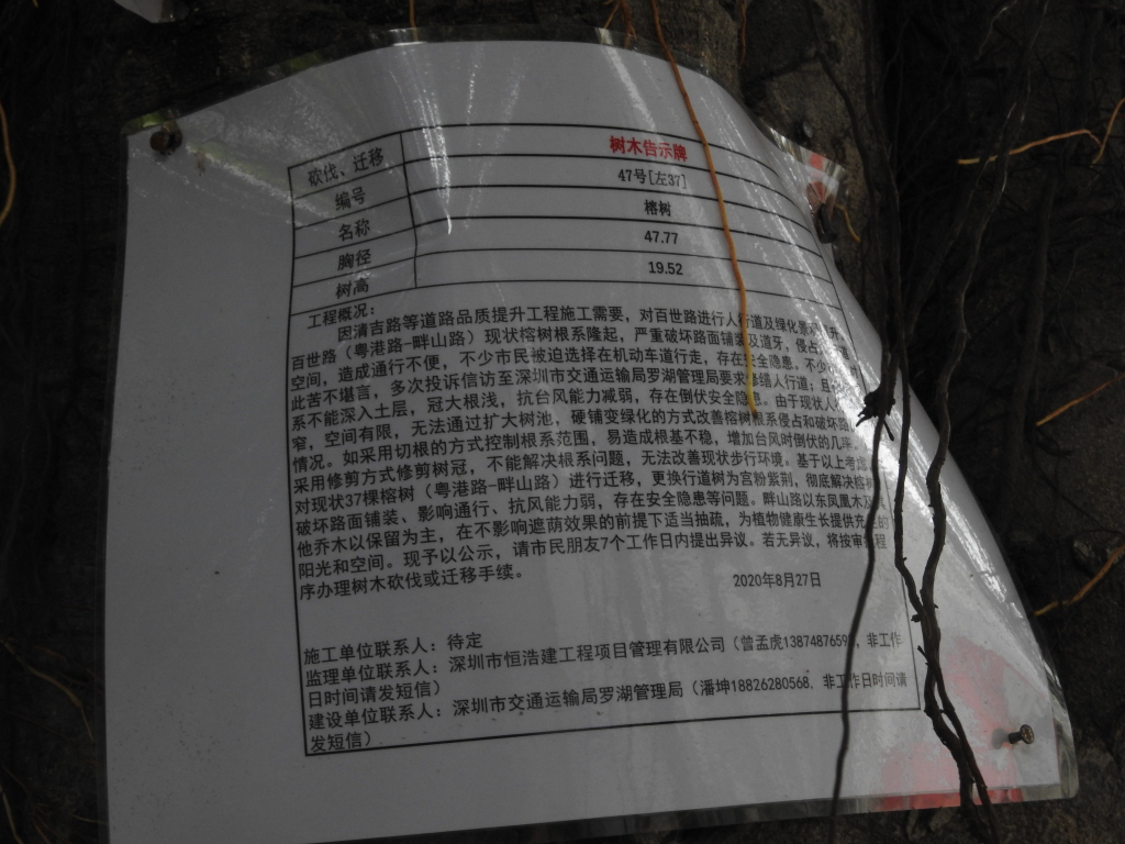 9月11日,市交通運輸局羅湖管理局回應(yīng)表示,稱“經(jīng)核實,百世路西段北側(cè)(畔山路以西)樹木為大葉榕,屬于榕樹的一種,榕樹有多種,如小葉榕、大葉榕、高山榕、垂葉榕等,百世路榕樹現(xiàn)狀根系已確實對人行道造成破壞。”對于其它樹被砍的情況,“僅對影響道路轉(zhuǎn)彎半徑(畔山路右轉(zhuǎn)百世路)的兩棵鳳凰樹遷移砍伐”。并在不影響遮陰的情況下“對北側(cè)過密其他喬木進(jìn)行抽梳”。