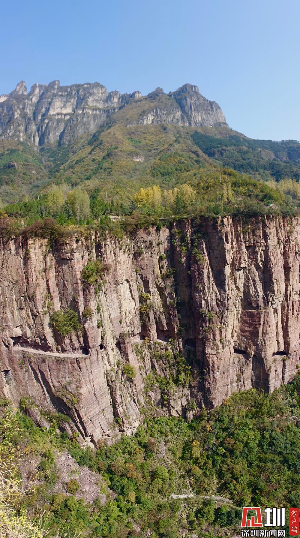 在萬(wàn)仙山大景區(qū)中,郭亮村已成為人氣最為旺盛的景點(diǎn)。圖為萬(wàn)仙山絕壁之景。李仁奇攝