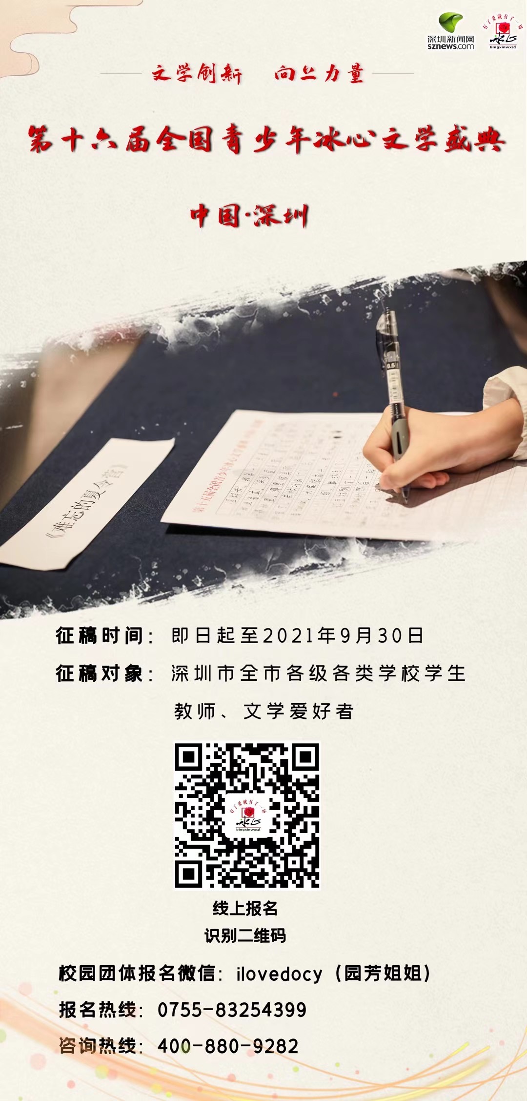 全國青少年冰心文學(xué)盛典組委會中國·深圳與深圳新聞網(wǎng)是唯一主辦單位。
