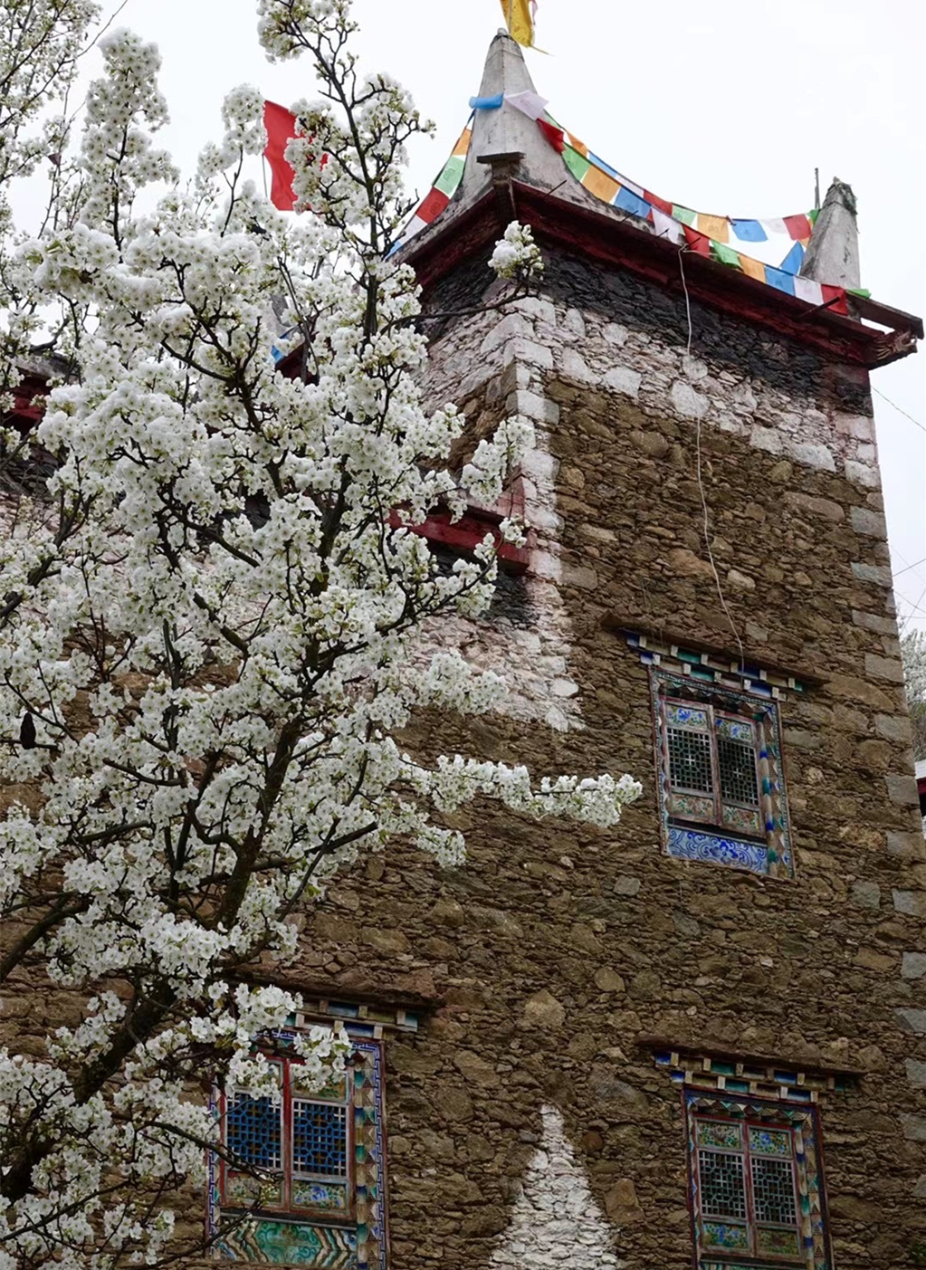 藏式民居與雪花梨花桃花相互掩映,美若仙境。李仁奇 攝