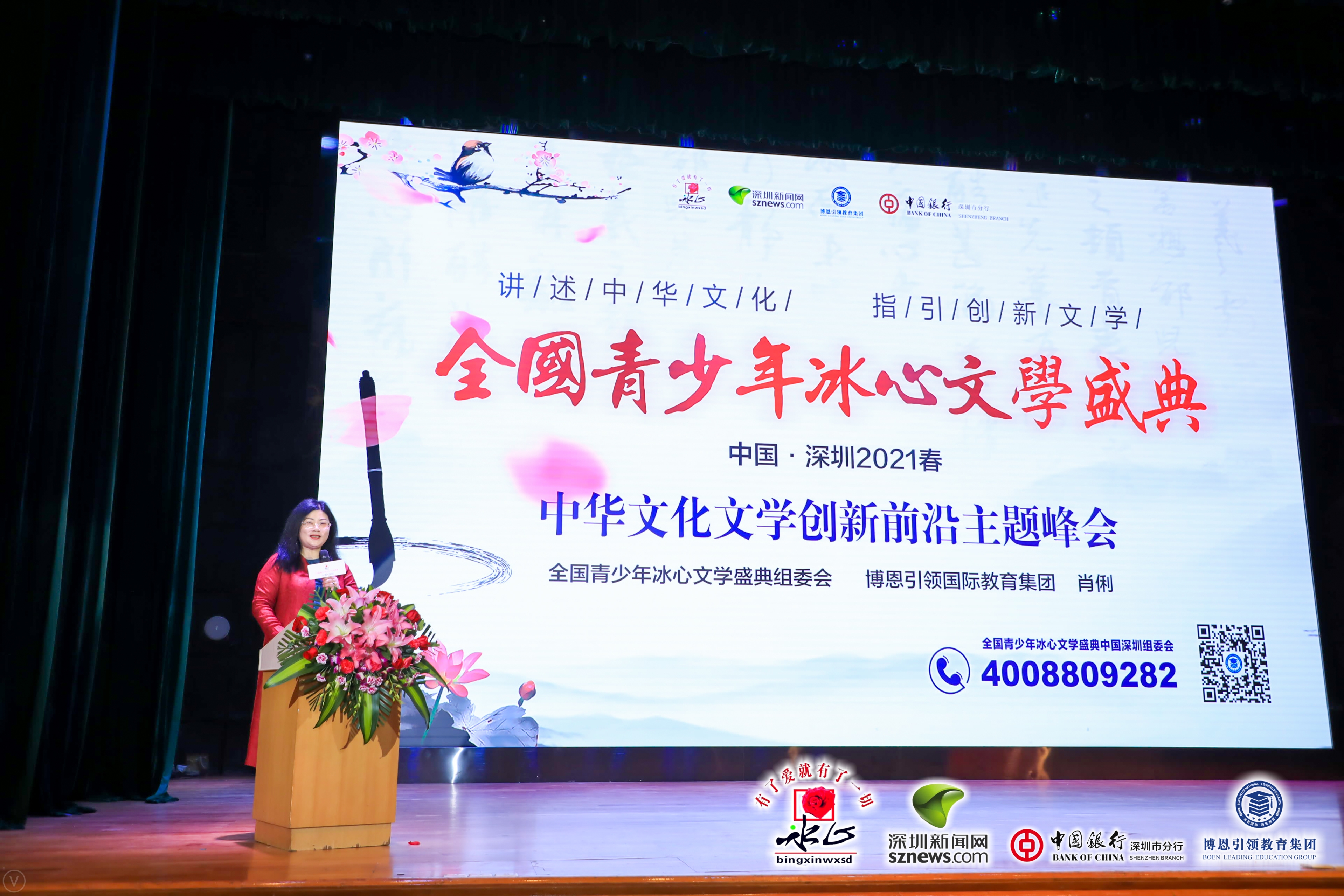 全國青少年冰心文學(xué)盛典中國·深圳組委會(huì)、博恩引領(lǐng)教育集團(tuán)負(fù)責(zé)人肖俐致辭