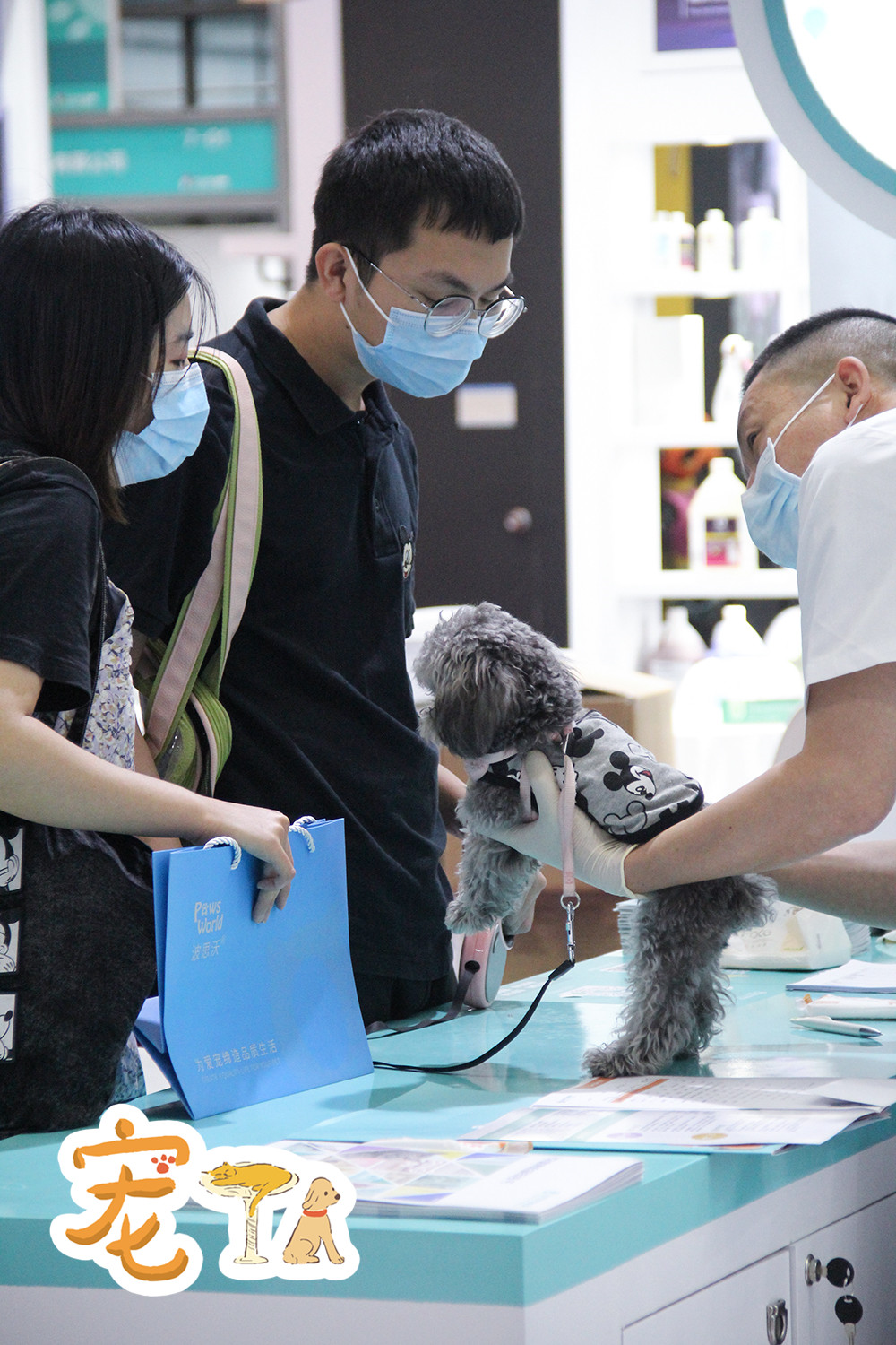 免費義診區(qū),家長正在向醫(yī)生咨詢狗狗的健康狀況。