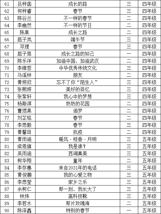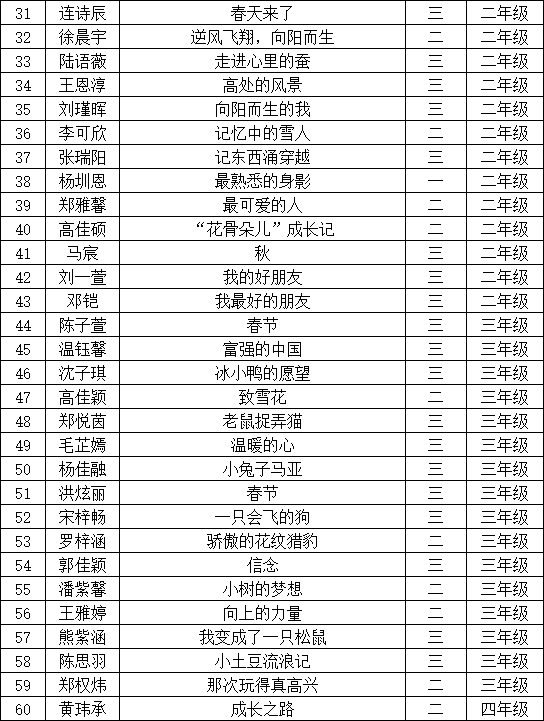 自2021年1月,活動征稿啟動以來,獲得了深圳市廣大中小學(xué)生、教師、文學(xué)愛好者的熱烈響應(yīng)積極參與,吸引了深圳百余所學(xué)校的上萬人關(guān)注報名。現(xiàn)公布寶安區(qū)翻身實驗學(xué)校(東校區(qū))晉級復(fù)賽名單如下: