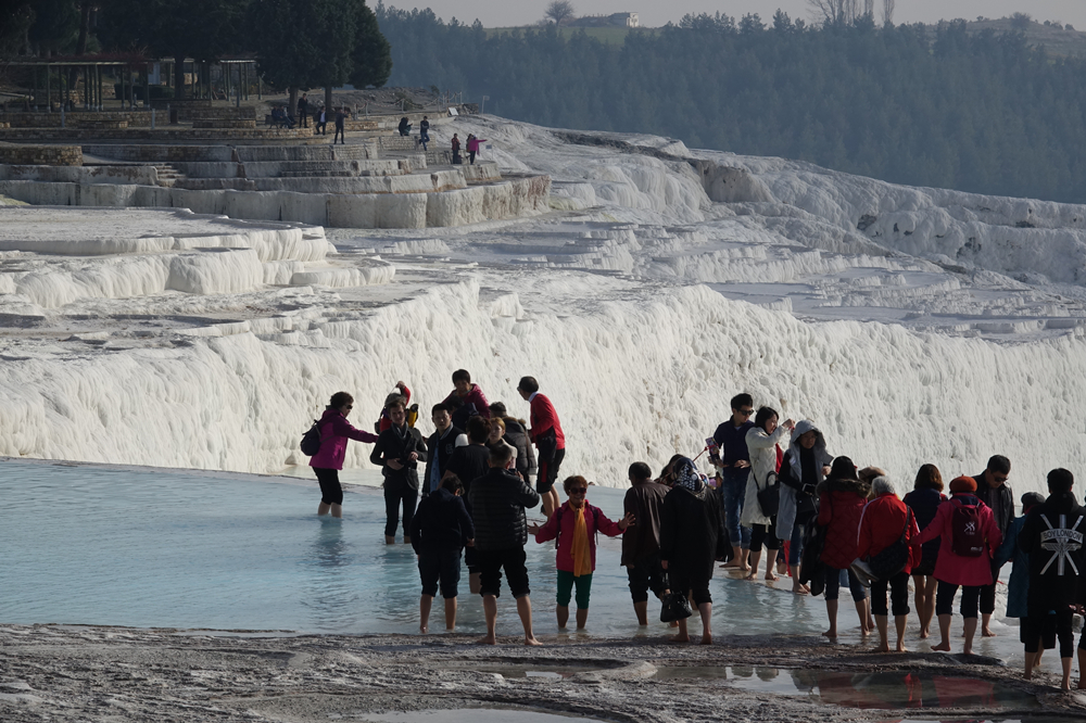 進入棉花堡,一定要赤腳,以防鞋底磨損石灰?guī)r。嗯,有點硌腳,就當一次腳底按摩。李仁奇 攝