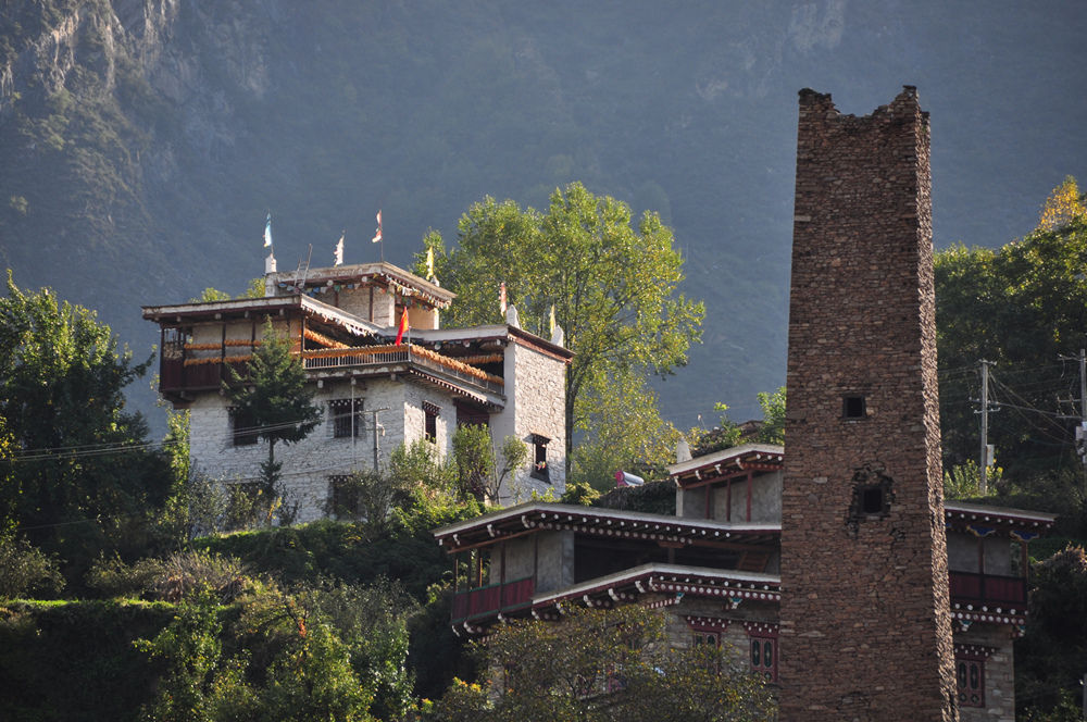 古碉修建的選址因地制宜,既要顧及防洪避災(zāi),還要考慮易守難攻,多建造在視野開闊、向陽避風(fēng)的山坡上。李仁奇 攝
