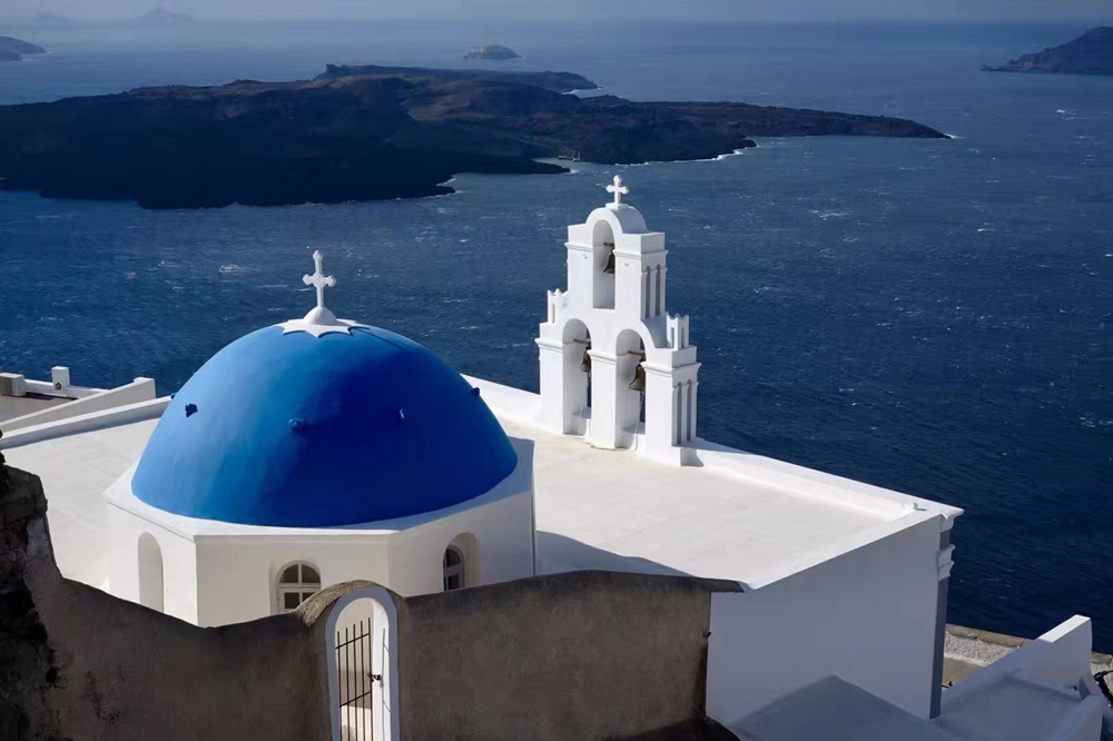 藍(lán)頂教堂曾經(jīng)登上美國(guó)《國(guó)家地理》雜志的封面,使圣島聲名遠(yuǎn)播。李仁奇 攝
