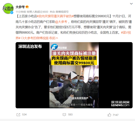 (相關(guān)報道:讓眾多店家崩潰的潼關(guān)肉夾饃商標(biāo)許可費國家知識產(chǎn)權(quán)局回應(yīng)了)