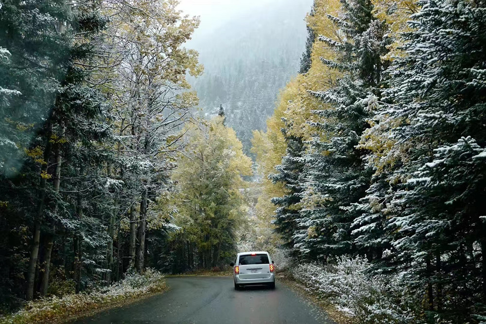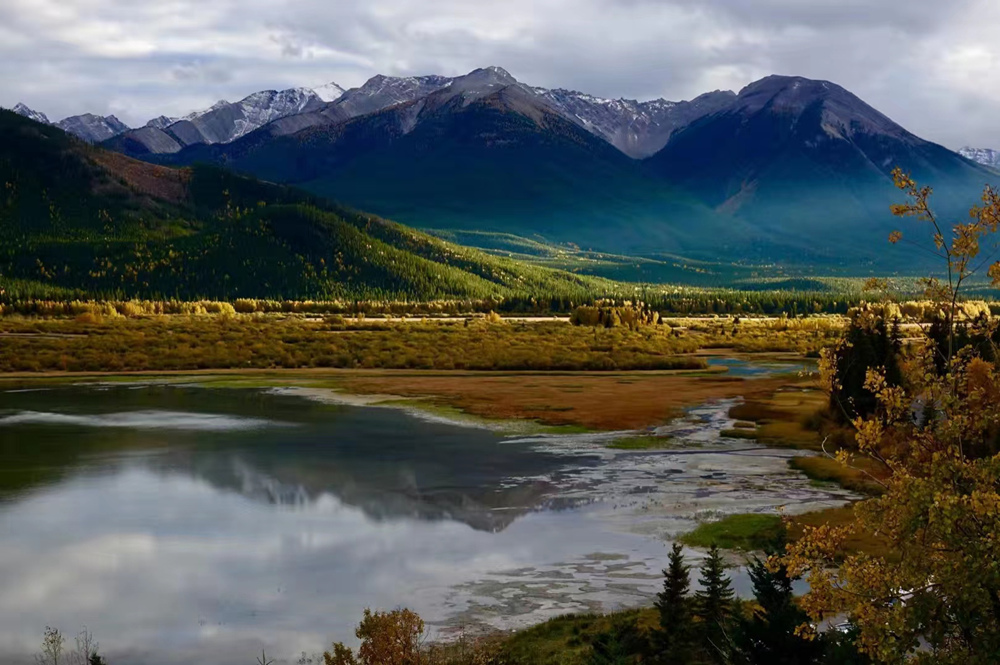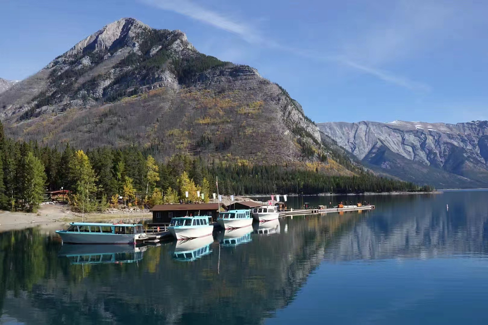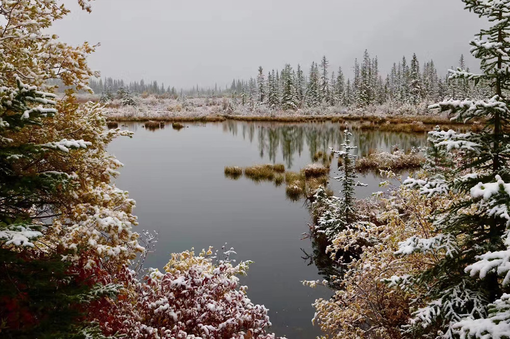 秋季是班夫最美的季節(jié),像九寨溝一樣,在藍(lán)色湖泊、綠色叢林之外,又多出了紅色和黃色的樹葉,映襯在白色的雪山之中,呈現(xiàn)出一個五彩繽紛的世界。李仁奇 攝