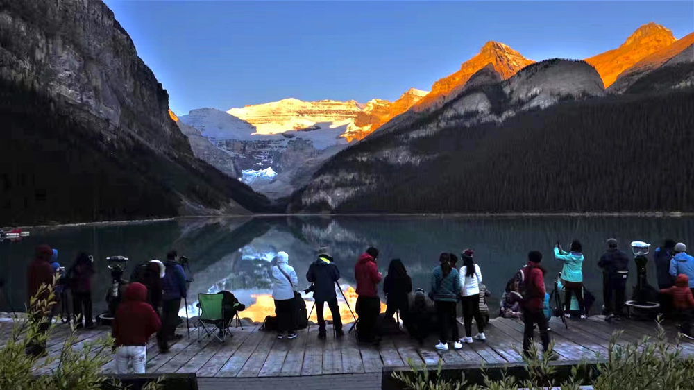 露易斯湖源自維多利亞冰川,湖水碧綠清澈,遠(yuǎn)望就像鑲嵌在落基山脈中的一顆翡翠。李仁奇 攝