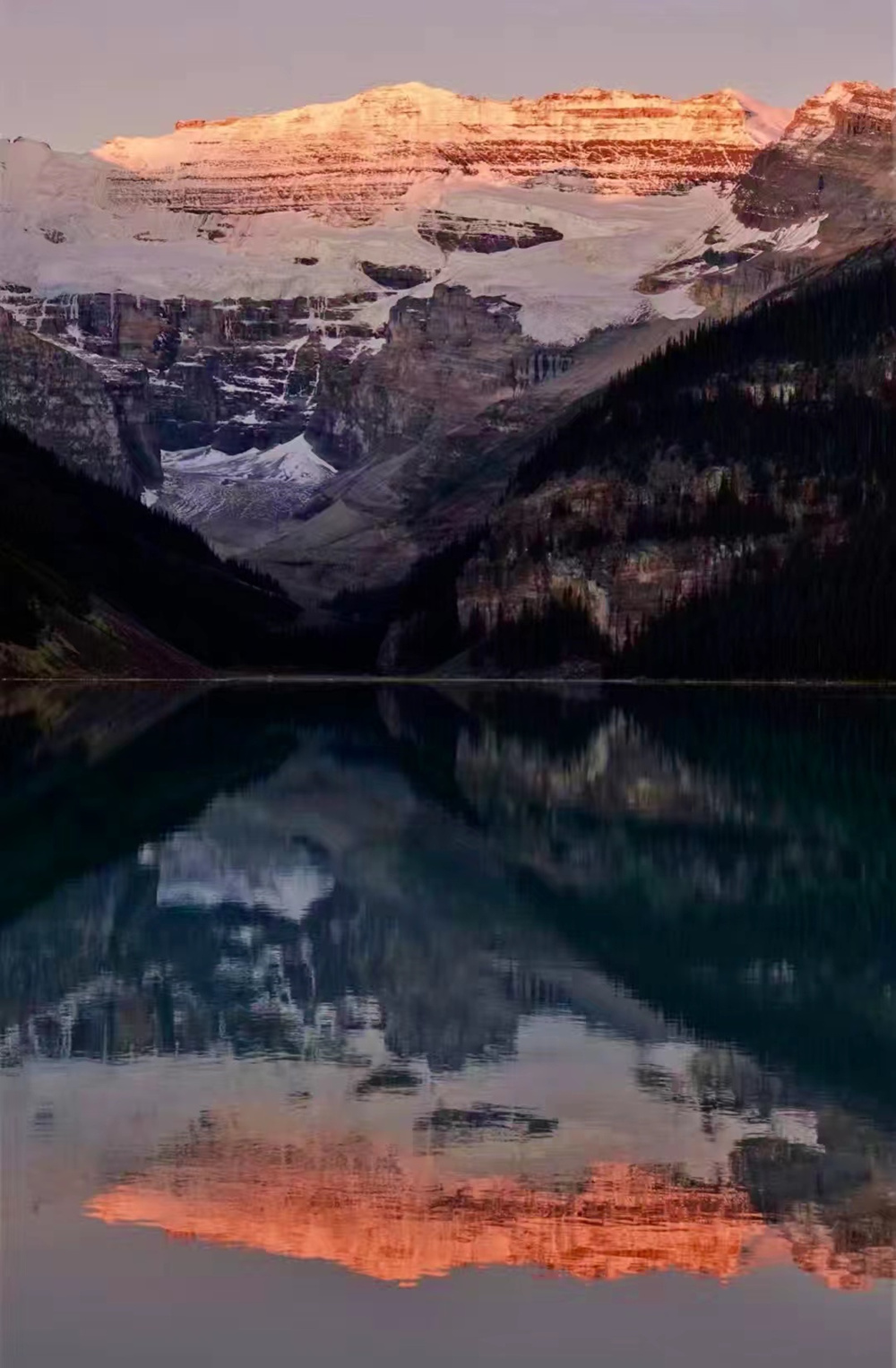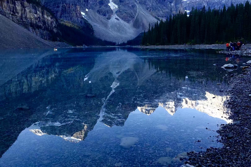 湖水晶瑩剔透,在鋸齒狀的山谷的擁環(huán)下,就像一塊寶玉。這塊“國寶”被印在加拿大20元的紙幣上。李仁奇 攝