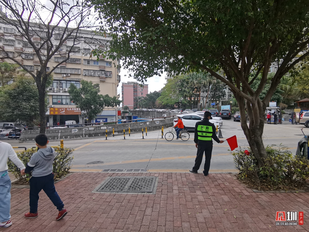 路邊有專(zhuān)人負(fù)責(zé)交通指引(記者攝于1月21日上午11時(shí)25分)