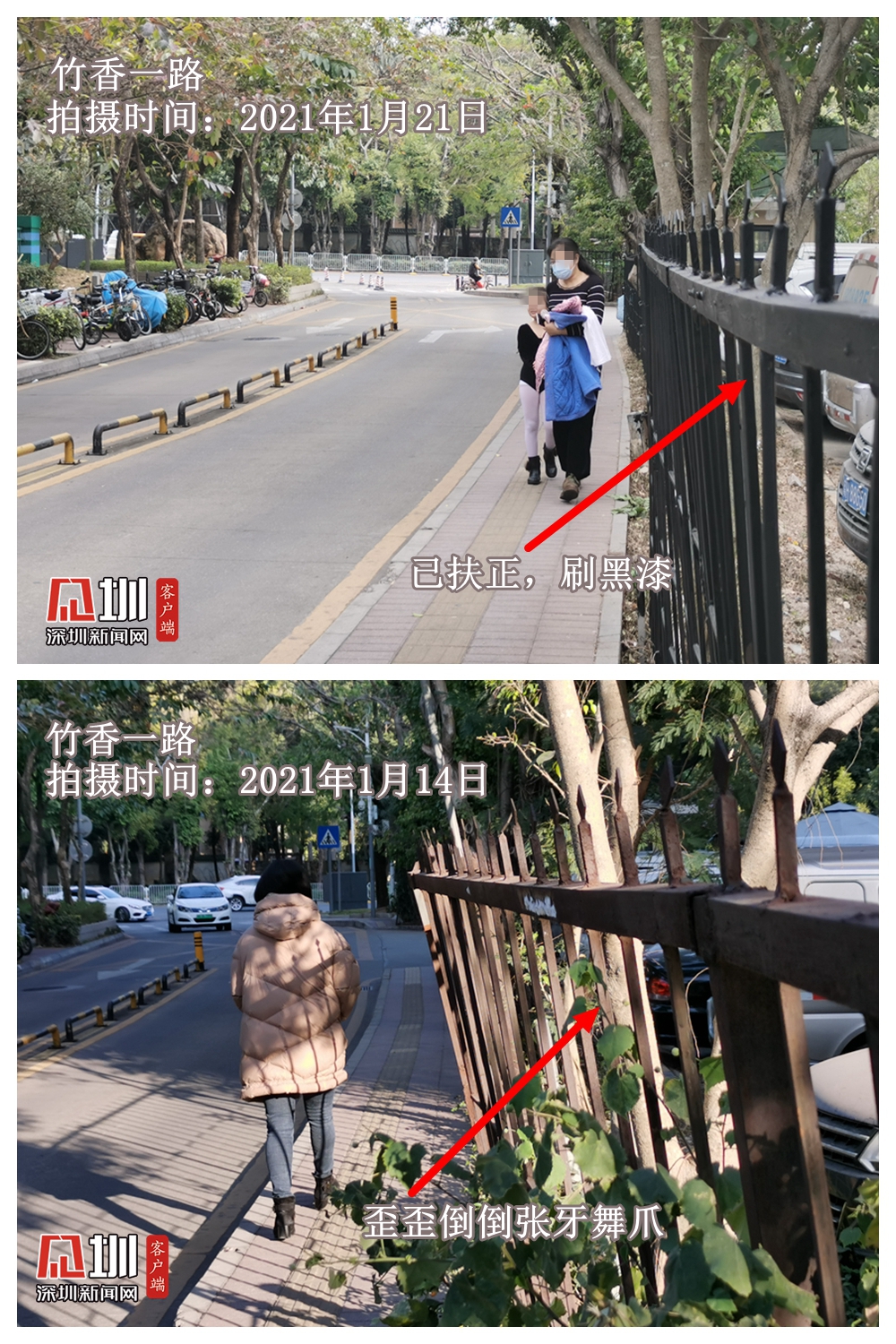 見(jiàn)圳客戶(hù)端·深圳新聞網(wǎng)2021年1月21日訊(記者 陳致遠(yuǎn))窄窄的人行道,搖搖欲墜張牙舞爪的圍欄——第16期深網(wǎng)記“路”儀報(bào)道的竹香一路,有了最新進(jìn)展。此前因找不到代建單位而無(wú)法移交主管部門(mén)管養(yǎng)的這條路,在記者報(bào)道后不到一周的時(shí)間,歪歪倒倒的圍欄扶正了,人行道也即將拓寬。