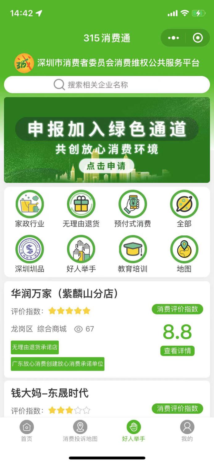深圳消委會(huì)“315消費(fèi)通”小程序“好人舉手”-“無理由退貨”欄目