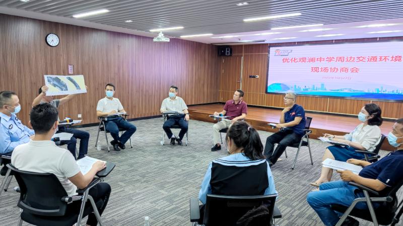 10月27日,謝文浩、居學(xué)成主持召開以“優(yōu)化觀瀾中學(xué)周邊交通環(huán)境”為主題的身邊事好商量協(xié)商會,應(yīng)邀而來的龍華區(qū)政協(xié)委員、社區(qū)居民代表、觀瀾中學(xué)教師代表和學(xué)生家長代表,針對優(yōu)化觀瀾中學(xué)交通環(huán)境問題提出訴求,如加快打通臨寶街、修復(fù)校園周邊破損路面、清晰描畫交通標線、解決周邊車輛違停等訴求。