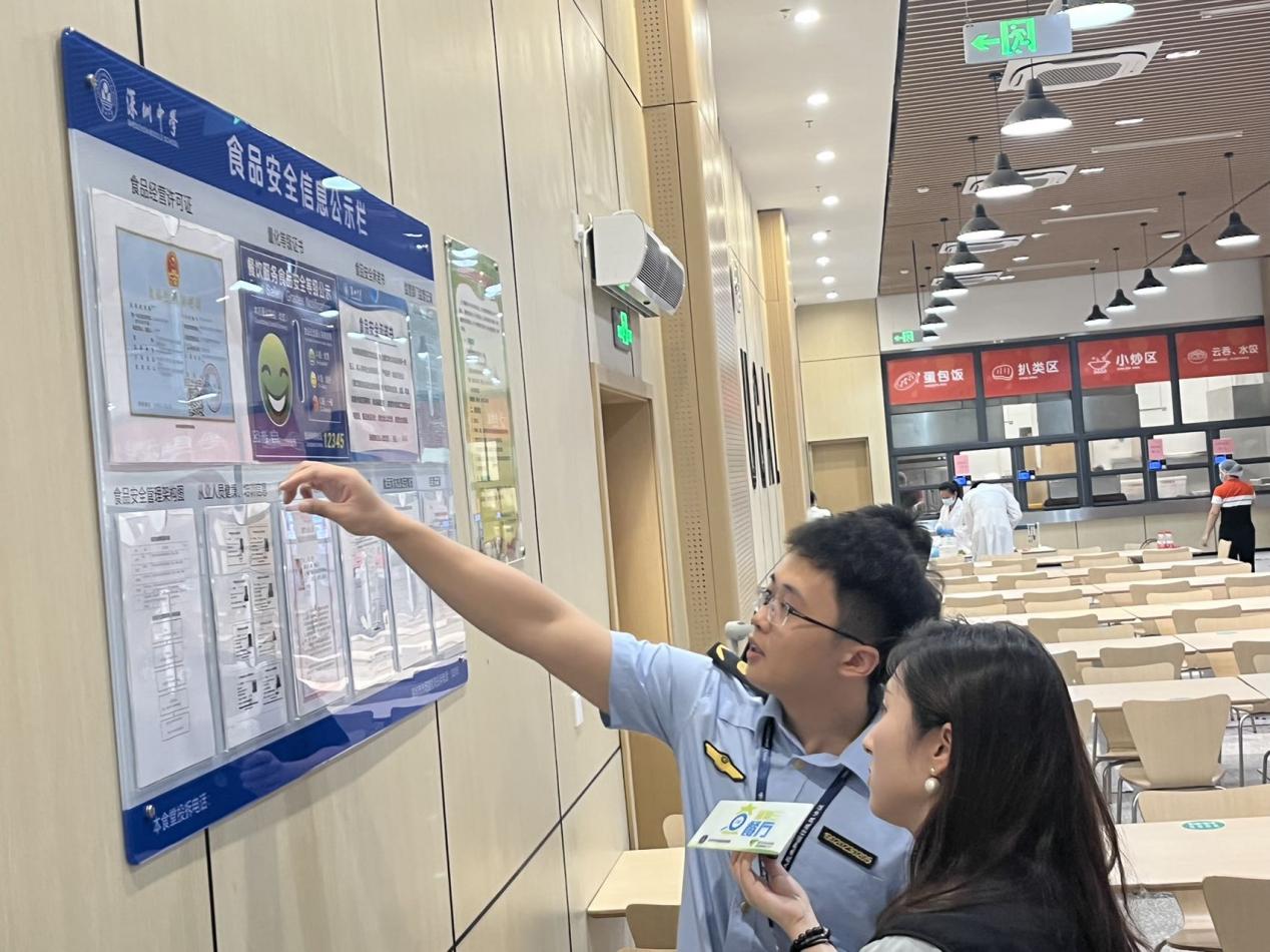 在食堂用餐區(qū),執(zhí)法人員依次查看食品安全公示欄、明廚亮灶系統(tǒng)、用餐區(qū)域消毒記錄等信息。檢查過(guò)程中發(fā)現(xiàn)部分從業(yè)人員健康證即將到期,深圳市市場(chǎng)監(jiān)督管理局羅湖監(jiān)管局執(zhí)法人員羅偉仁提醒,為保護(hù)從業(yè)人員自身及服務(wù)對(duì)象的健康,應(yīng)盡快更新辦理從業(yè)人員健康證。