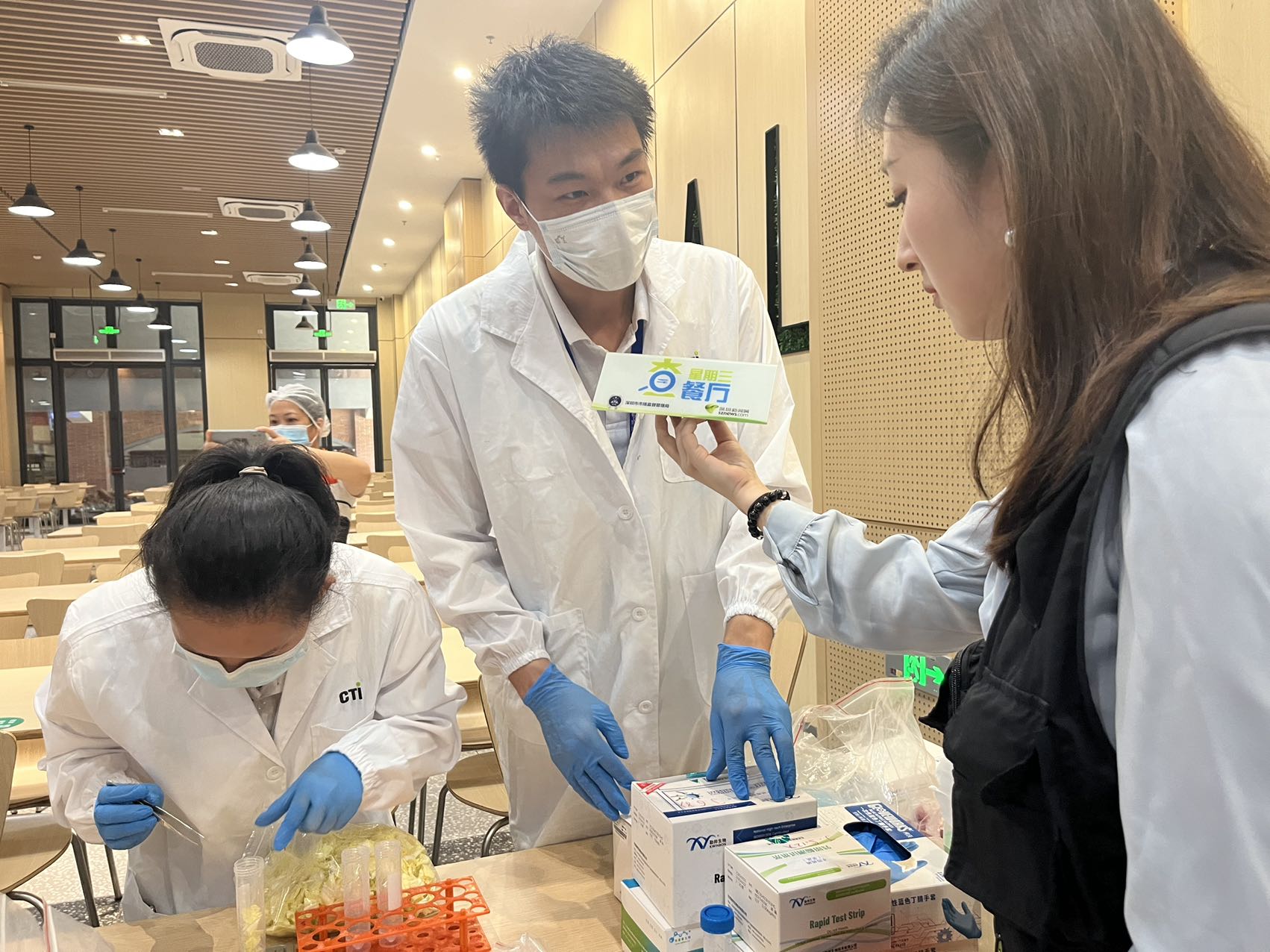 執(zhí)法行動(dòng)進(jìn)行的同時(shí),快檢人員也來(lái)到現(xiàn)場(chǎng)對(duì)食材進(jìn)行抽樣檢測(cè)。據(jù)介紹,本次抽樣檢查的食材樣品均合格。