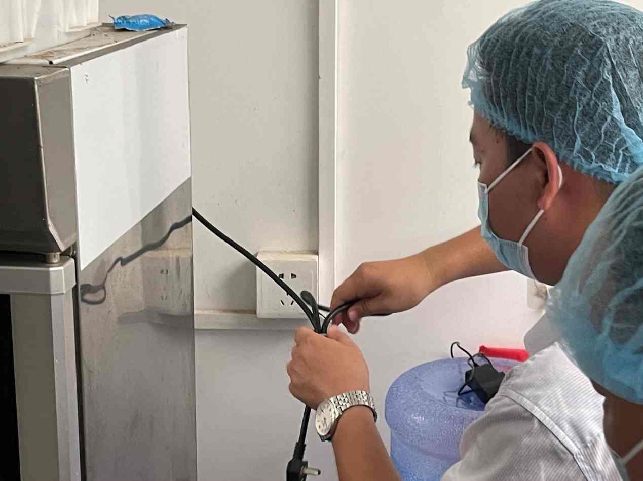 執(zhí)法人員也對后廚的設施進行了細致檢查。在檢查消毒柜時,執(zhí)法人員發(fā)現(xiàn)該消毒柜未連通電源,對存放在其中的餐具起不到消毒的作用;而在配餐間,存放菜品的保溫池也并未接通電源,執(zhí)法人員稱,若保溫池不接通電源,菜品的中心溫度極有可能無法保持在70°以上,容易滋生細菌,造成食物中毒。