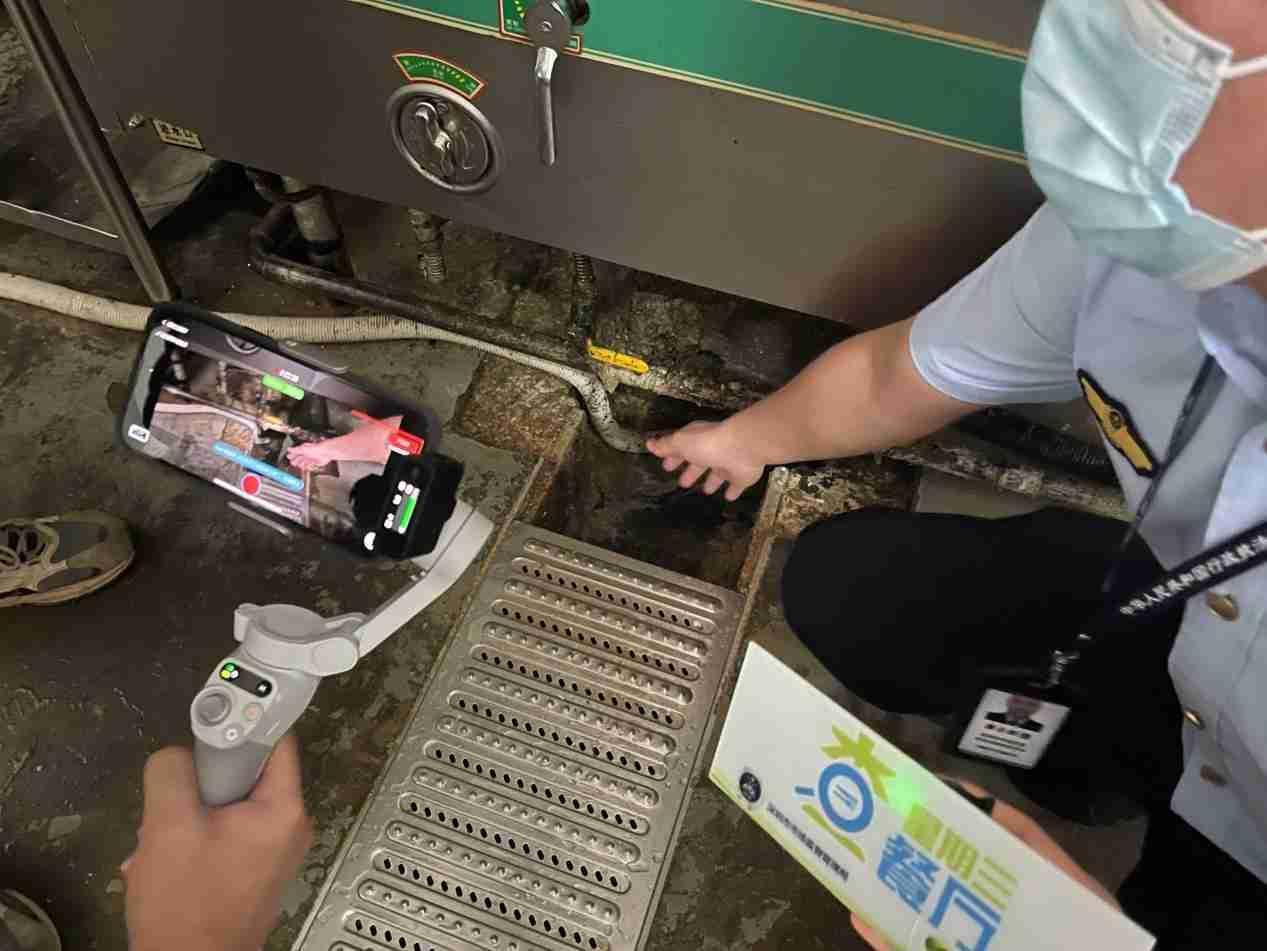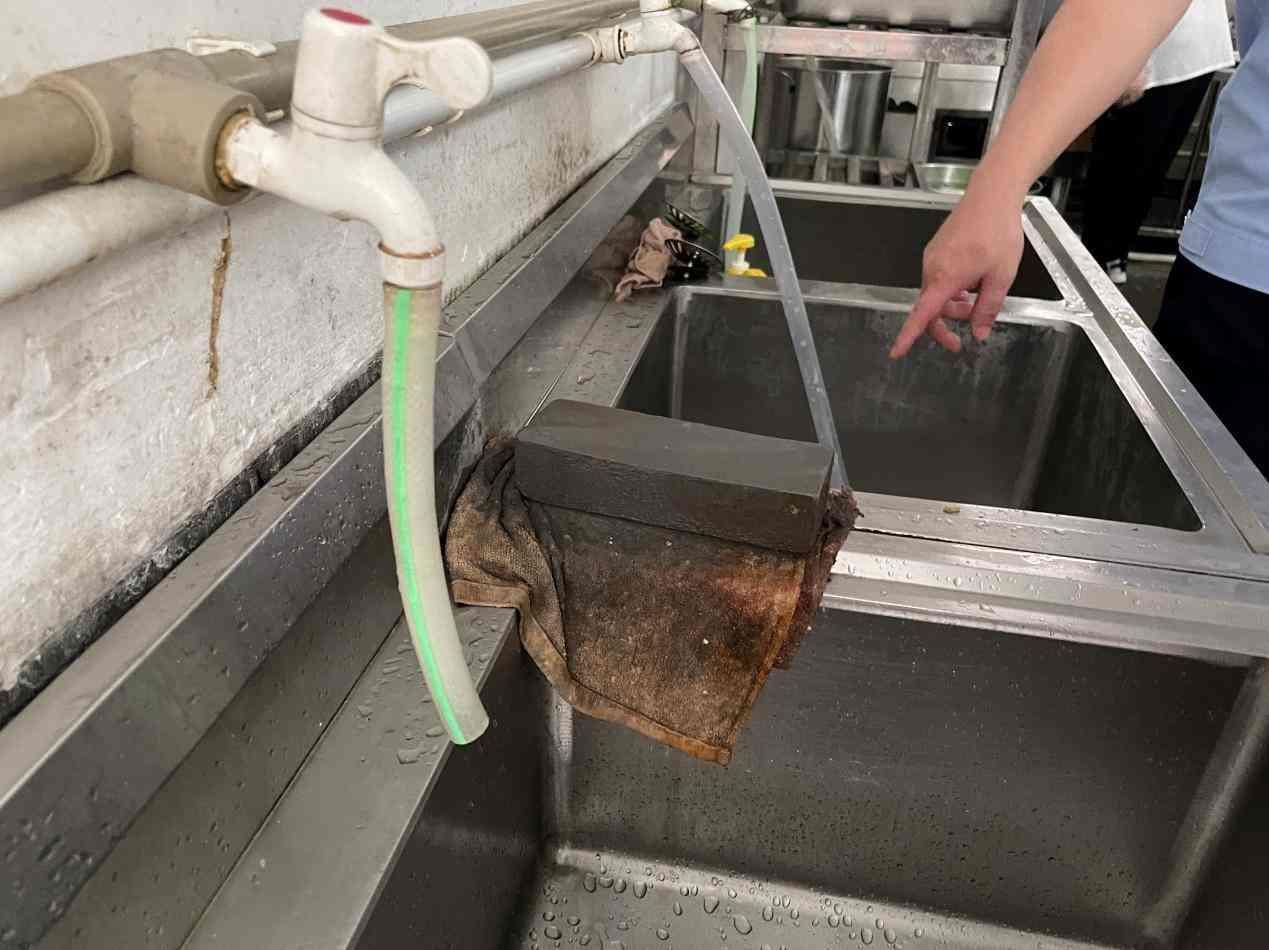 但在檢查中,執(zhí)法人員也發(fā)現(xiàn)了不少的問題。在粗加工區(qū),執(zhí)法人員發(fā)現(xiàn)蔬菜清洗池旁邊有一塊潔凈程度較差的磨刀石,要求食堂負責人將其清潔后移放別處,以防止對食材產(chǎn)生污染。進入烹飪區(qū),執(zhí)法人員對食堂員工進行了手部檢查,發(fā)現(xiàn)員工指甲偏長,要求盡快剪除。同時,執(zhí)法人員發(fā)現(xiàn)烹飪區(qū)缺少燈具,光線較為昏暗,若鍋中有異物難以發(fā)現(xiàn),建議食堂負責人盡快安裝燈具。而在烹飪區(qū)的地面,執(zhí)法人員在排水渠盡頭發(fā)現(xiàn)了一個未加遮掩的大洞,執(zhí)法人員表示,這樣的大洞極容易造成老鼠、蟑螂等生物的入侵,要求食堂負責人盡快對此問題進行整改。
