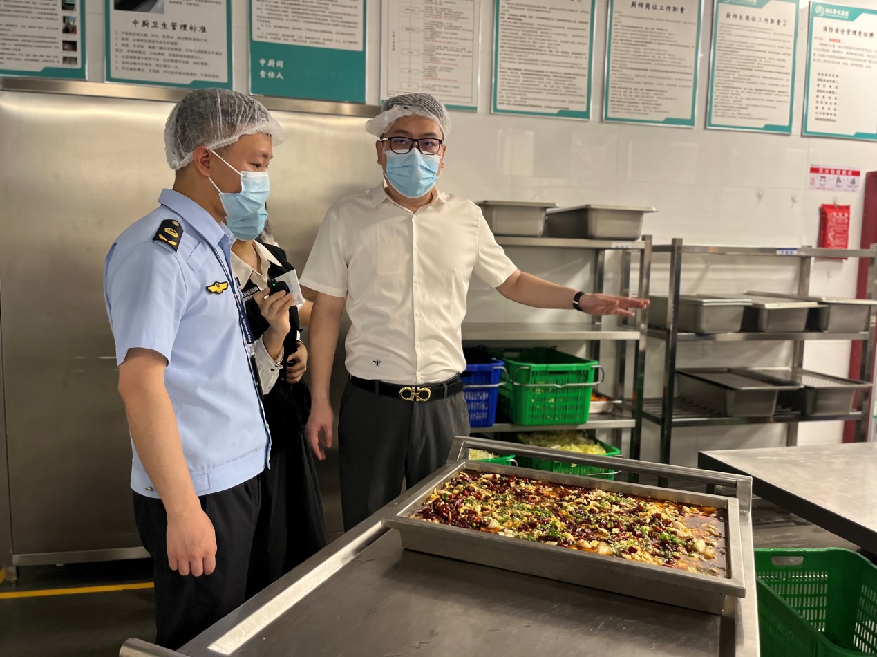 執(zhí)法人員現(xiàn)場(chǎng)對(duì)學(xué)校后廚進(jìn)行詳細(xì)檢查,分別從采購(gòu)索證索票、進(jìn)貨查驗(yàn)、制作加工、備餐配送、場(chǎng)所和設(shè)施清潔維護(hù)、餐飲具清洗消毒、從業(yè)人員健康管理,制止餐飲浪費(fèi),食品安全總監(jiān)配置履職情況,以及落實(shí)主體責(zé)任的“日管控周排查月調(diào)度”制度等方面進(jìn)行詳細(xì)檢查。經(jīng)檢查,整體情況良好,但存在部分細(xì)節(jié)問題,如水產(chǎn)品刀具分類可更細(xì)致、操作臺(tái)積水需清理、面點(diǎn)間的食材存放需避免陽光直射等,針對(duì)檢查過程中發(fā)現(xiàn)的問題,執(zhí)法人員現(xiàn)場(chǎng)責(zé)令學(xué)校限期整改到位。同時(shí),快檢工作人員對(duì)餐廳使用的食材進(jìn)行了抽檢,結(jié)果均為陰性。