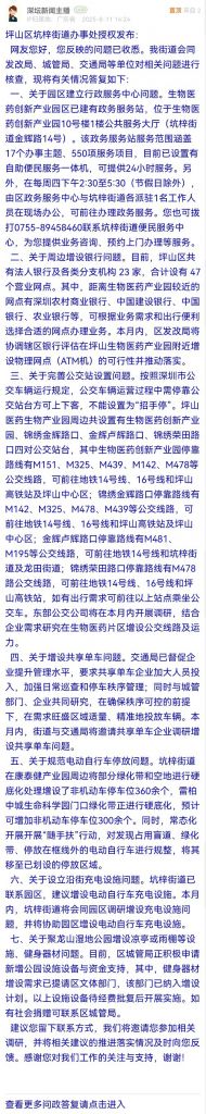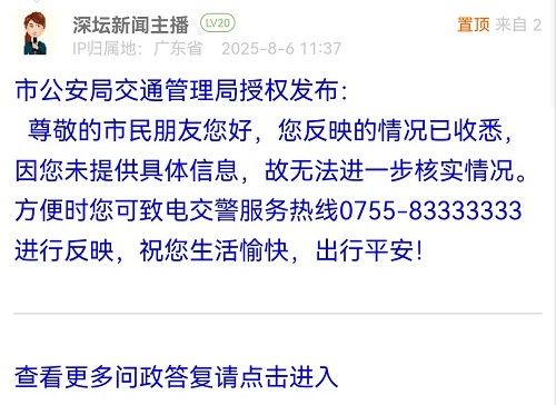各職能單位如需對網友反映的問題進行回應,可在深圳論壇注冊官方賬號并通過認證,回帖進行回應。