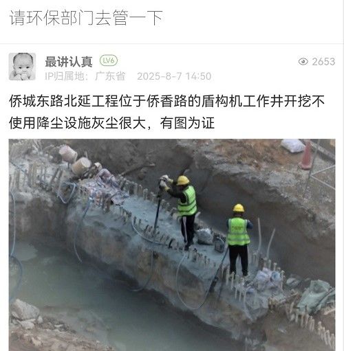 網友,您好!經核實,該處為僑城東路北延通道工程盾構工作井施工現場,現場圍擋已安裝自動噴淋系統,并在主要施工區(qū)域設置霧炮機。目前現場正在開展鑿除地連墻混凝土施工,因作業(yè)點較分散,我們已安排施工單位增加霧炮機,確保易揚塵面濕法連續(xù)作業(yè)。后續(xù)將安排專人專責,加強工地現場常態(tài)化巡視巡檢,做好防塵防護措施。感謝您的關注和理解!