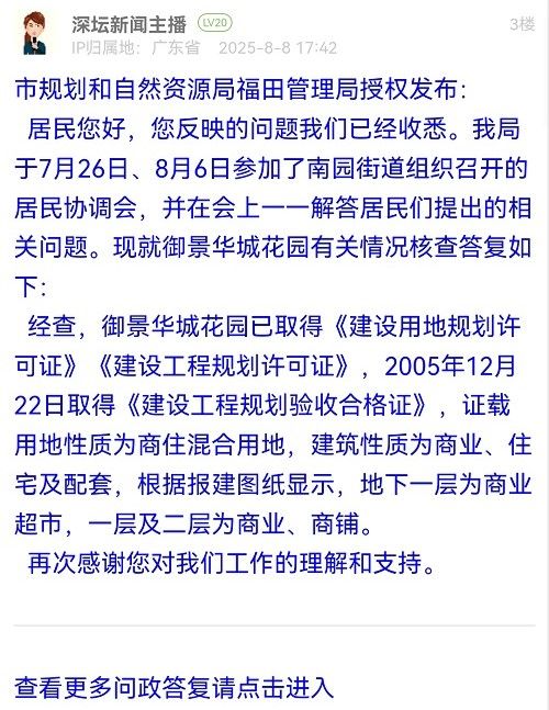 (一)關于“社區(qū)、街道辦很早就知道此消息,但業(yè)主和住戶一直被蒙在鼓里”:經核實,京基御景華城商業(yè)廣場原權利人深圳市京基房地產股份有限公司(下稱“京基公司”)于今年7月初將產權轉讓給深圳市龍勝電子市場有限公司(下稱“龍勝公司”),龍勝公司計劃將該商業(yè)廣場升級改造為二手手機市場,并在相關視頻賬號上公開宣傳。相關經營主體出售物業(yè)產權,在程序上無需街道社區(qū)審批同意或到街道社區(qū)備案,街道直至7月中旬才得知該商業(yè)廣場的產權轉讓事宜。