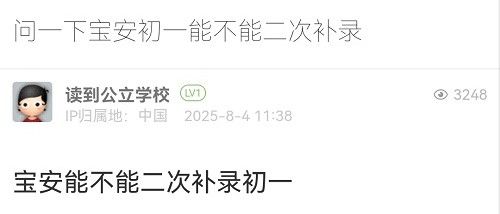 9. 帖文《寶安教育局能不能二次補錄公辦初中》