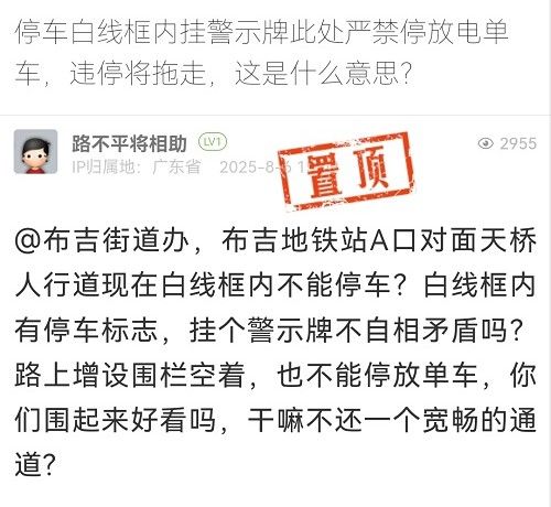 針對市民提及“白線框內有停車標志,掛個警示牌不自相矛盾嗎?”的問題。經核實,市民提及的問題處已被規(guī)劃為不可停放區(qū)域,禁停標識及鐵馬圍擋是為清除白線框施工而設置的臨時空間預留措施,對此給市民帶來的誤解以及不便,我們深表歉意。目前該處白線停車框及禁停標識已一并清除。