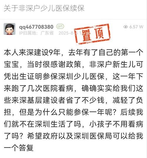 8. 帖文《關于非深戶少兒醫(yī)保續(xù)保》