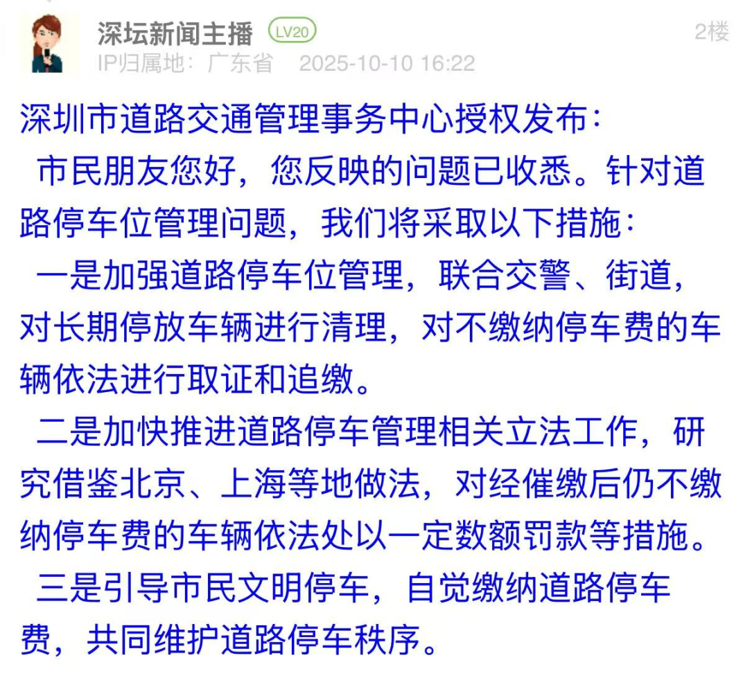 優(yōu)化建議:市民在帖文中反映,其此前的投訴件被標記為“辦結”,但霸位車輛依舊未被移走,現(xiàn)場問題未解決,質疑相關部門執(zhí)行力不足。對于市民的再次投訴,深圳市道路交通管理事務中心的回應存在公式化、未切實回應市民核心關切的問題,僅以“加強管理”“推進立法”“引導文明停車”等回復,難以消除公眾對治理執(zhí)行力的疑慮。建議后續(xù)強化回應針對性,具體問題具體答復,如公開執(zhí)法流程、提供處置證據(jù)等,以務實態(tài)度回應市民監(jiān)督,提升治理公信力。