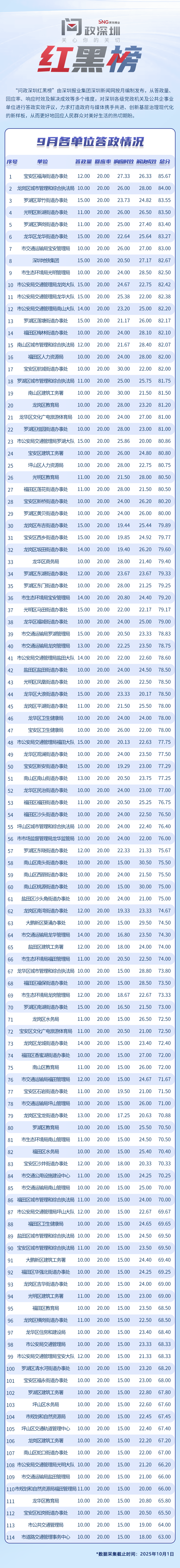 為探尋媒體如何精準賦能基層治理現(xiàn)代化的“深圳路徑”,深圳報業(yè)集團正式掛牌成立“問政深圳”工作室,旨在進一步推動網(wǎng)絡問政工作的高效開展。為確保相關工作更加契合實際需求,自上期起,深圳報業(yè)集團深圳新聞網(wǎng)按照“最快速度辦結”的總體要求,將原有月度榜單創(chuàng)新升級為“問政深圳紅黑榜”,并對評分體系進行了細致優(yōu)化。該榜單從答政量、回應率、響應時效及解決成效等多個維度,對深圳各級黨政機關及公共企事業(yè)單位進行答政實效評議,力求打造政府與媒體攜手共進、創(chuàng)新基層治理現(xiàn)代化的新樣板,從而更好地回應人民群眾對美好生活的熱切期盼。