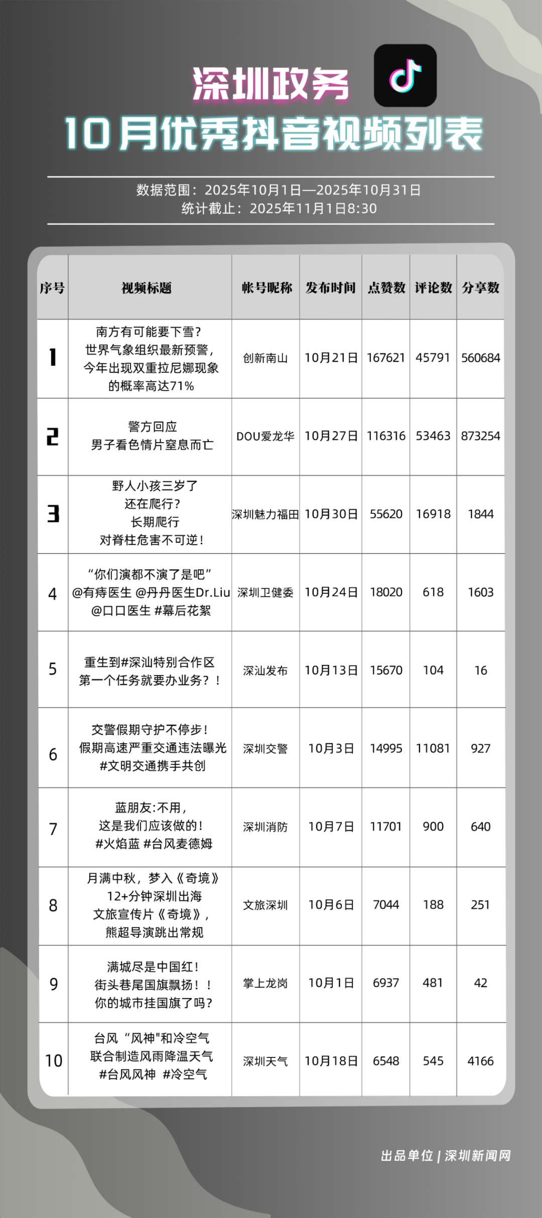 四、10月深圳優(yōu)秀政務新媒體賬號