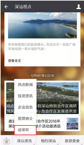 入駐的黨政自媒體:之前入駐的深圳發(fā)布、市交委、公安發(fā)布、政協(xié)、民政、公積金管理中心、市質(zhì)監(jiān)、工務(wù)署、司法、衛(wèi)計(jì)委、口岸辦、人社、文博會(huì)之外,近期入駐的大V伙伴還有深汕視點(diǎn)、深圳通等。各區(qū)(新區(qū))官方微信公眾號(hào)均組團(tuán)入駐。
