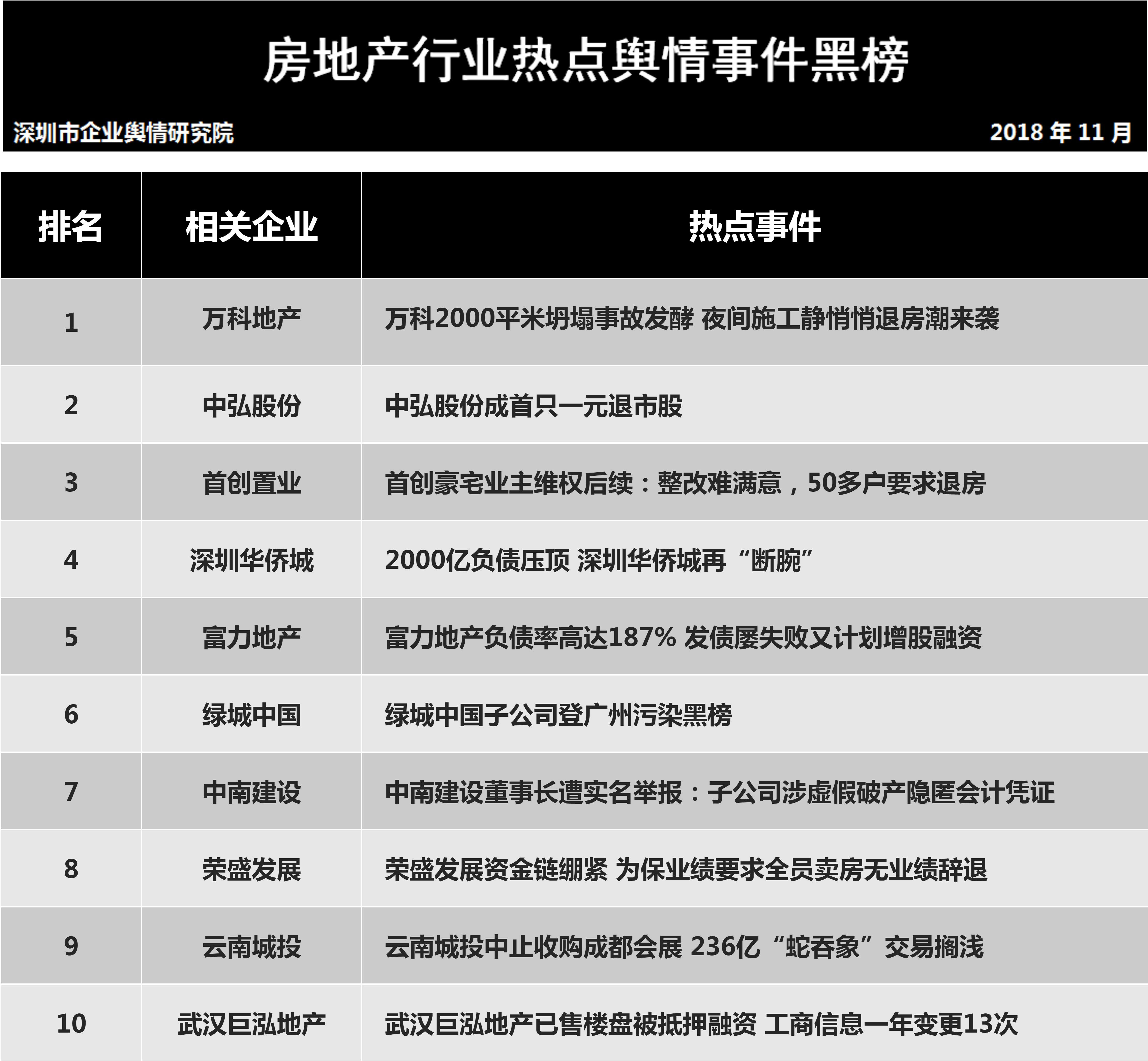 近日深圳企業(yè)輿情研究院發(fā)布第五批企業(yè)輿情榜單。本次榜單重點(diǎn)聚焦房地產(chǎn)及醫(yī)藥保健兩個(gè)行業(yè)。房地產(chǎn)行業(yè)企業(yè)輿情榜單由房地產(chǎn)行業(yè)熱點(diǎn)輿情事件排行榜(紅、黑榜)及房地產(chǎn)企業(yè)公眾形象排行榜組成。
