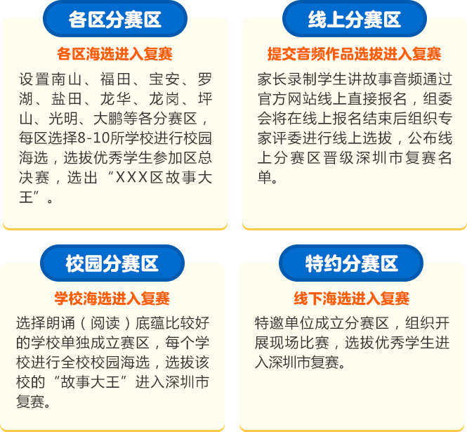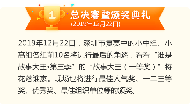 讓閱讀成為動人的風(fēng)景,讓故事的魅力感動深圳。為助力建設(shè)良好的青少年閱讀環(huán)境,激發(fā)學(xué)生閱讀興趣,倡導(dǎo)親子閱讀,共建和諧家庭關(guān)系。2020年,第二十一屆深圳讀書月主題活動“誰是故事大王·第四季”在共青團深圳市委員會、深圳市關(guān)愛行動組委會辦公室的指導(dǎo)下再出發(fā)。更長的活動周期,更豐富的參與形式,更專業(yè)的賽制,“誰是故事大王·第四季”等你來解鎖與挑戰(zhàn)!
